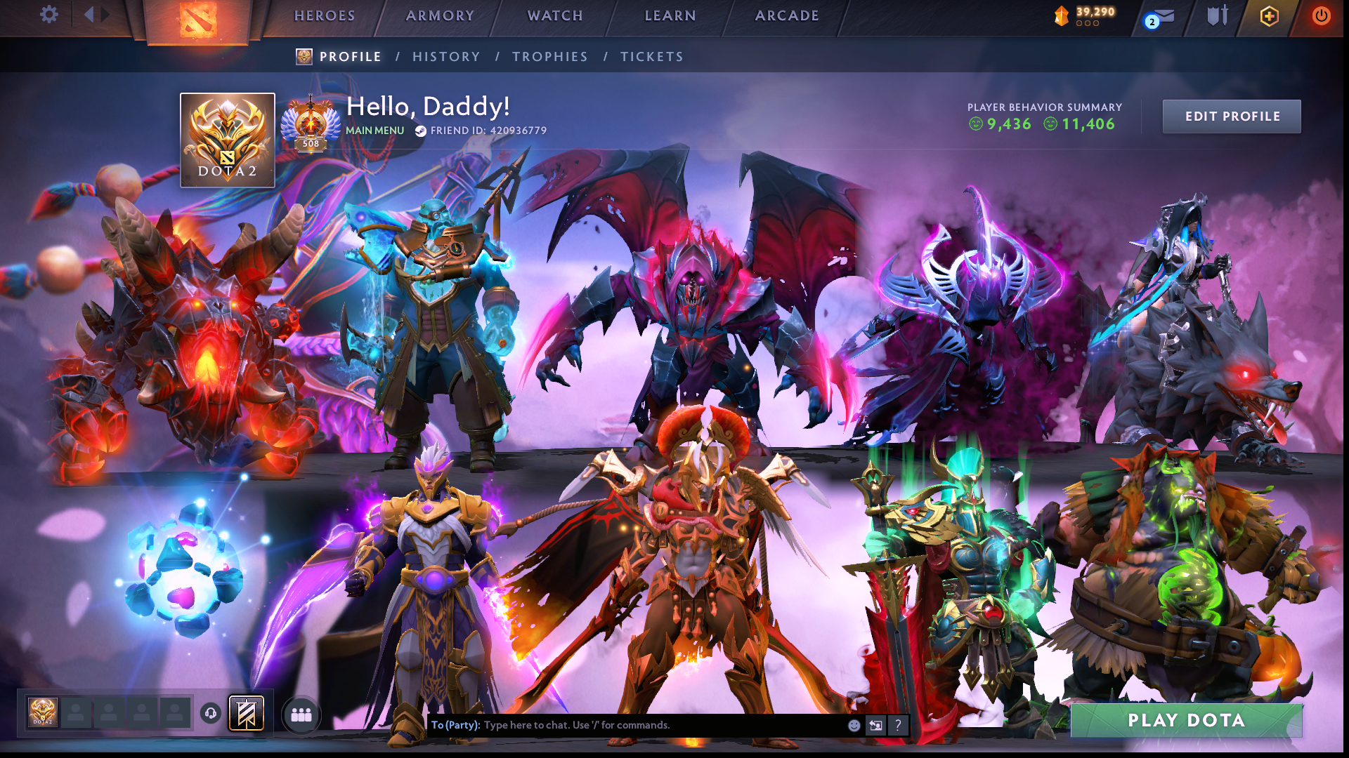 Immortal [508] - 10138 MMR - 11.4K Summary | Mainpool High Trophy | 4 Arcanas: LC, IO, Pudge, Ogre | Many Exclusive Caches | Games with rank 1 | Market Activated | Full Warranty